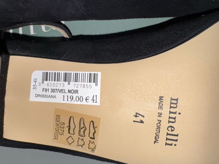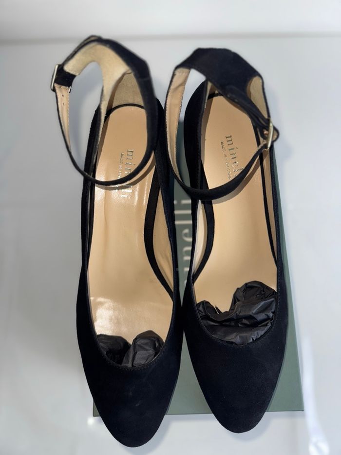 Escarpins Minelli noirs, neufs jamais portés, vendus avec leur boîte d’origine. Modèle élégant avec bride à la cheville et talon carré confortable, idéal pour une tenue chic ou pour le quotidien. Fabrication de qualité, made in Portugal. ✅ État : Neuf ✅ Taille : 41 ✅ Couleur : Noir ✅ Matière : Cuir / suédine ✅ Prix boutique : 119 € Chaussures élégantes et confortables, parfaites pour le travail, les sorties ou événements.