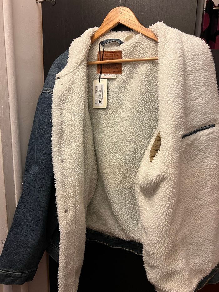 Très belle veste en Jean’s Levî’s avec fourrures intérieur et sur col Veste neuve sans aucune déchirure ou autres