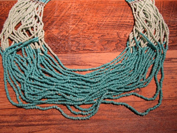 Collier style bohème pour femme perles turquoise bleu ciel - Bijoux fantaisie (B039) - photo numéro 1