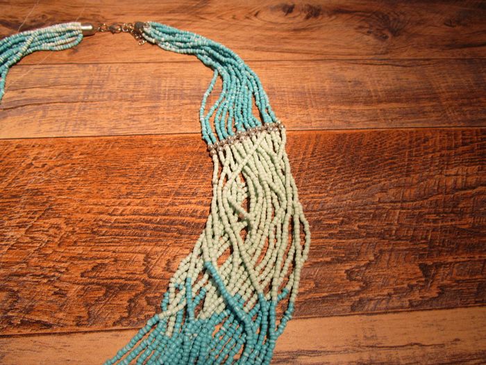 Collier style bohème pour femme perles turquoise bleu ciel - Bijoux fantaisie (B039)