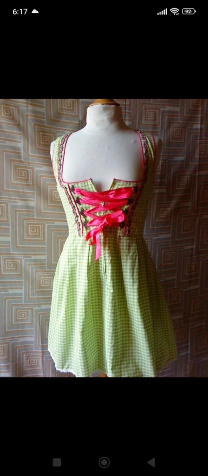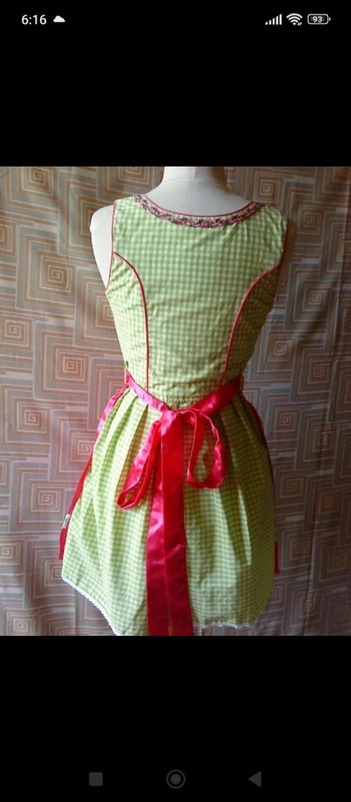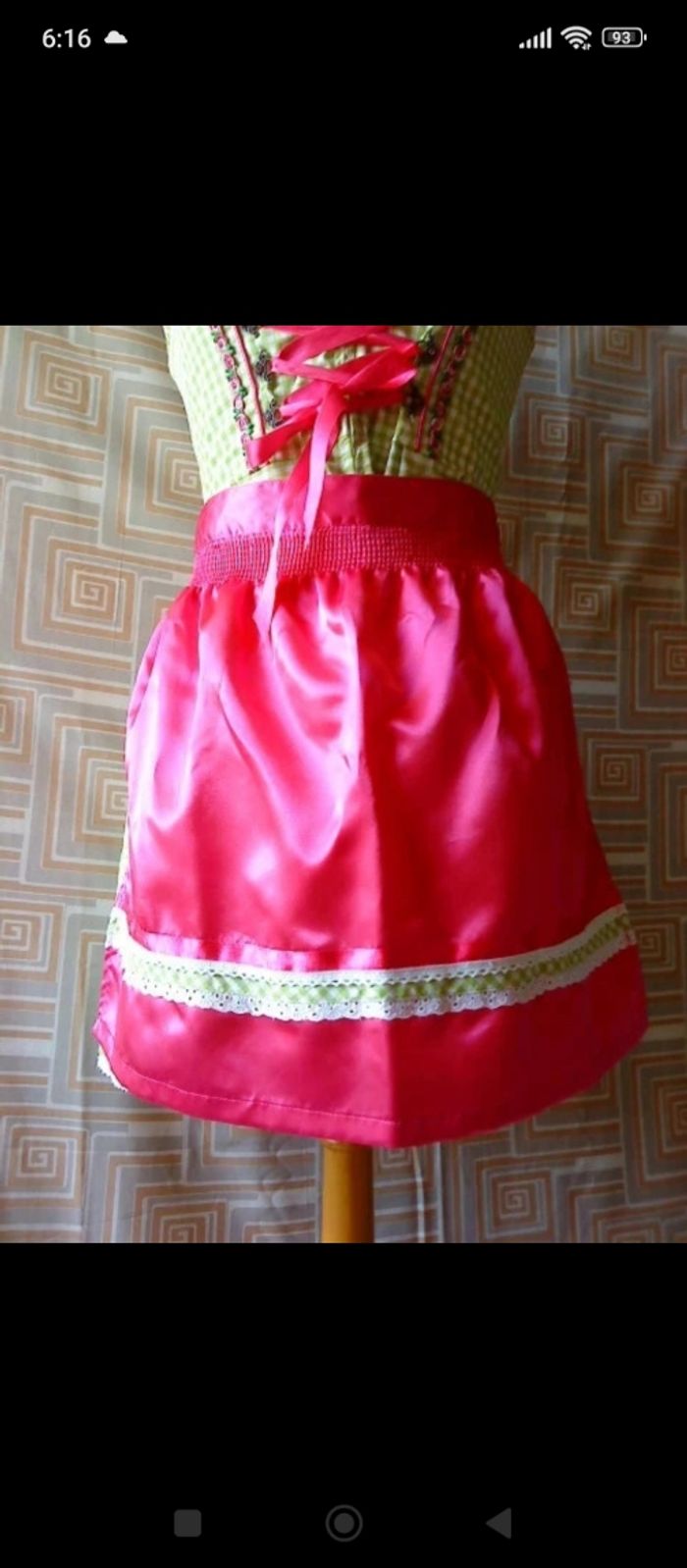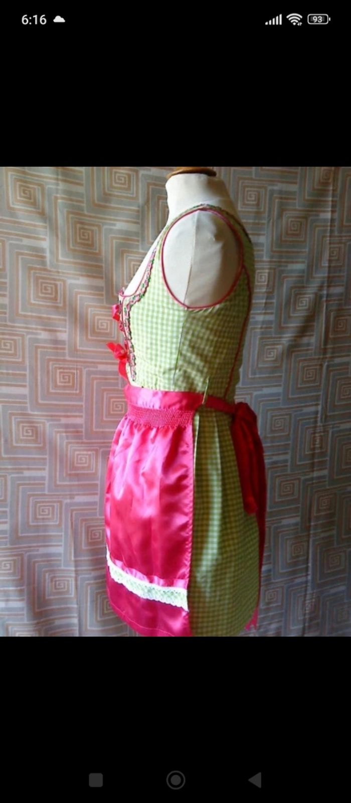 robe traditionnelle bavarois "BAYER MADL" élégante et raffinée "Dirnl" couleur vichy menthe avec tablier rose satiné le col liseré fleuri légèrement décolleté fermeture éclair devant crochet-strass/laçage rose le bas en dentelle 70% coton,30% polyester longueur 88 cm aisselle à aisselle 44 cm "lavage à la main"