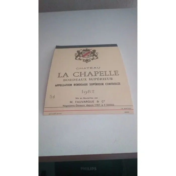 étiquette de vin château la chapelle bordeaux supérieur 1982 neuve -