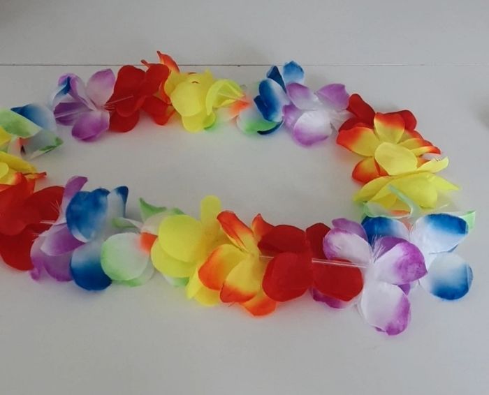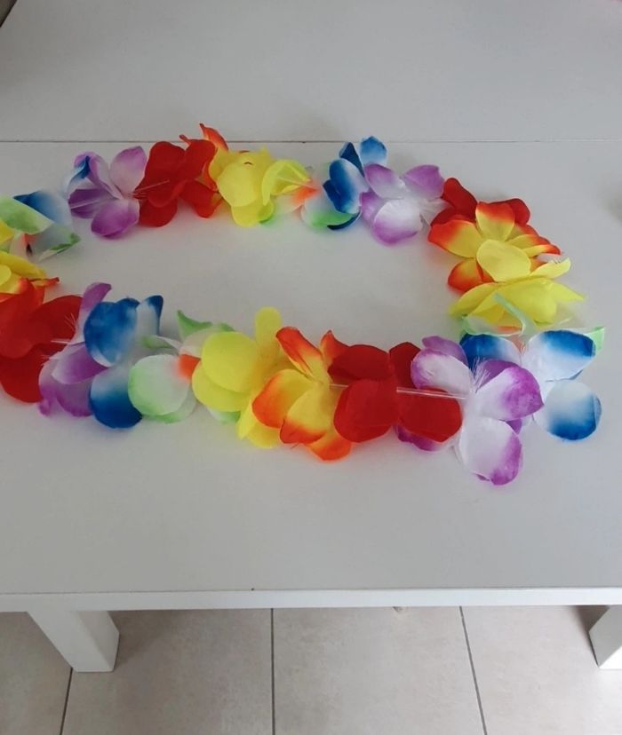 Je vends ce magnifique collier de fleurs multicolores jamais utilisé.