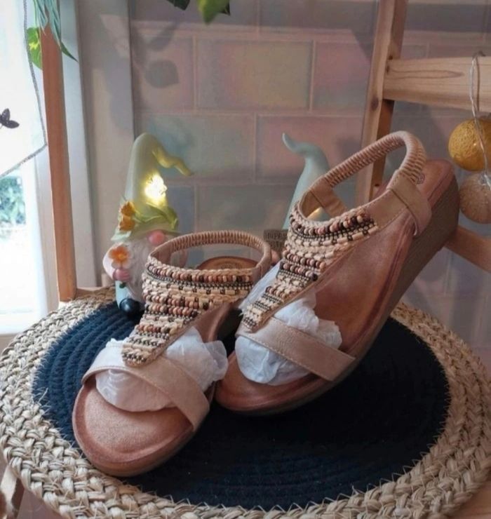 Jolies sandales compensées perles bohème Paloma Totem femme P39 - photo numéro 1