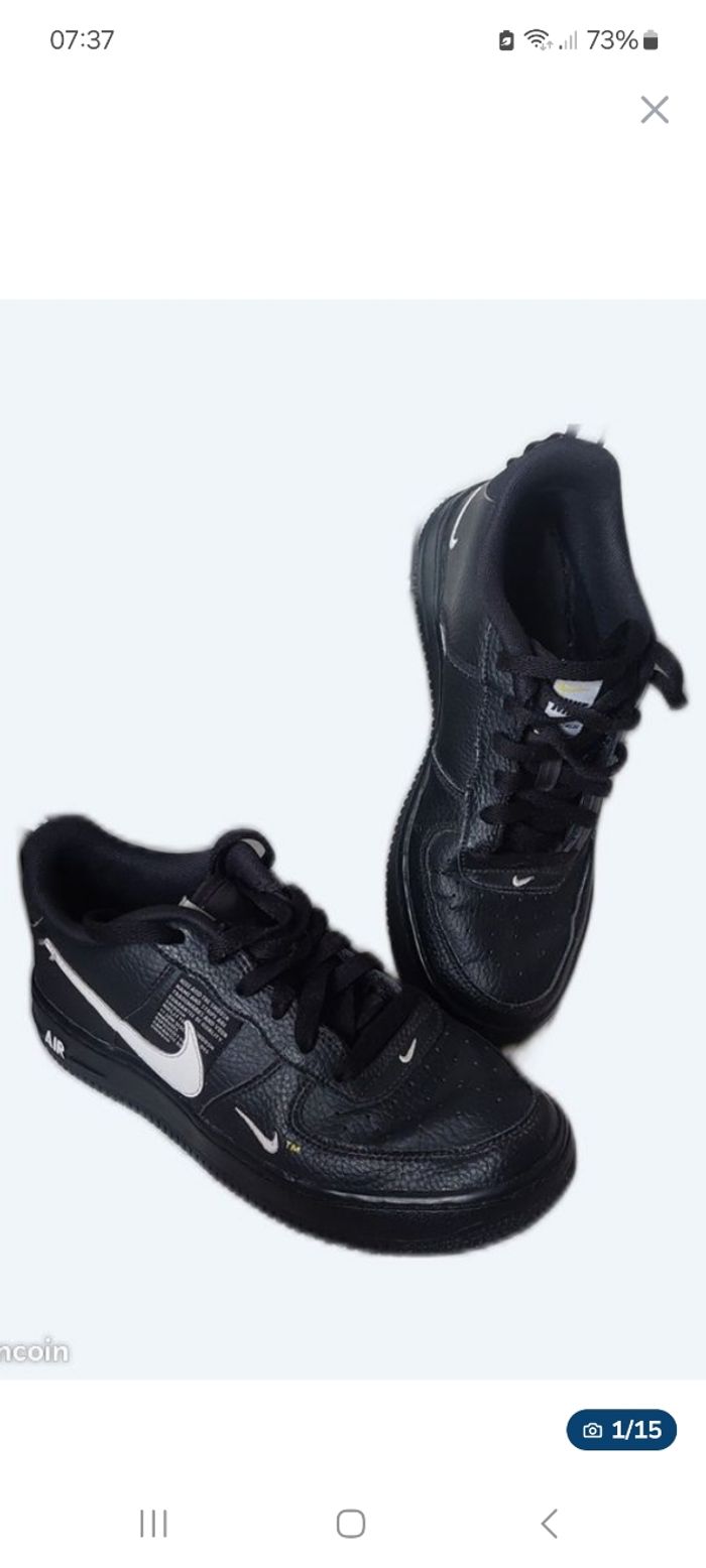 Baskets sneakers toutes en cuir noires de marque Nike modèle Air Force one utility taille 38 en très très bon etat