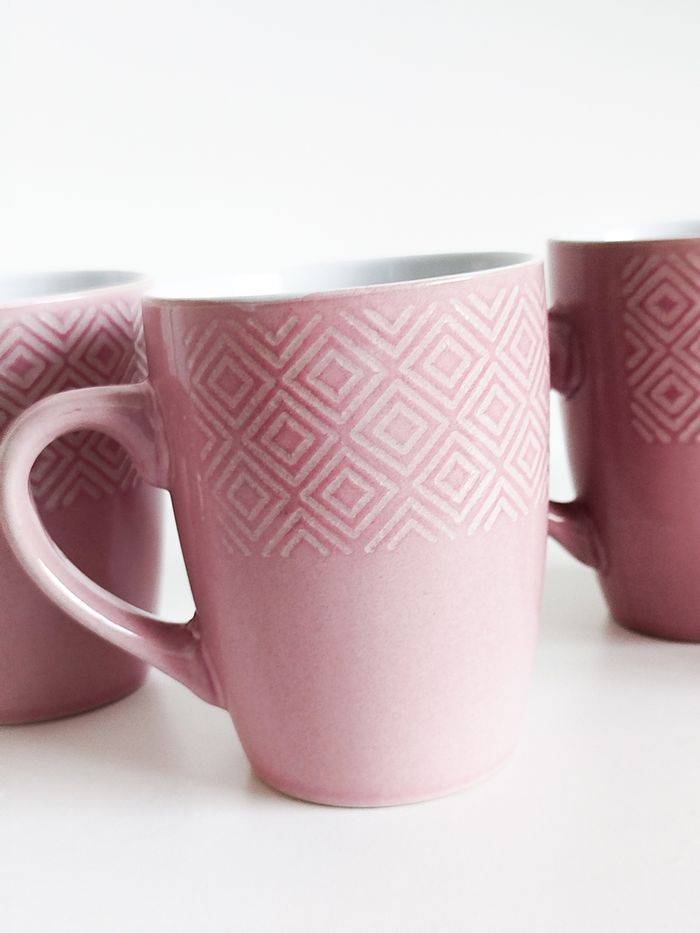 Lot de 3 Mugs Céramique Vieux Rose Motif Géométrique - 300ml - photo numéro 1