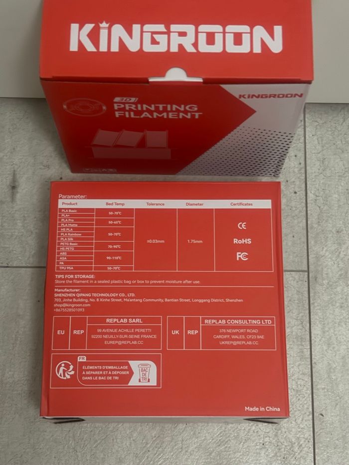 Je vends ce lot de 2 bobines de filament ABS blanc de la marque Kingroon, chaque bobine pèse 1 kg. - Type de produit : Lot de bobines de filament 3D - Marque : Kingroon - Matériau : ABS - Couleur : Blanc - Quantité : 2 bobines - Poids total : 2 kg - Diamètre : 1,75 mm État neuf sous blister N'hésitez pas à me contacter pour toute question ! Envoie rapide et soigné