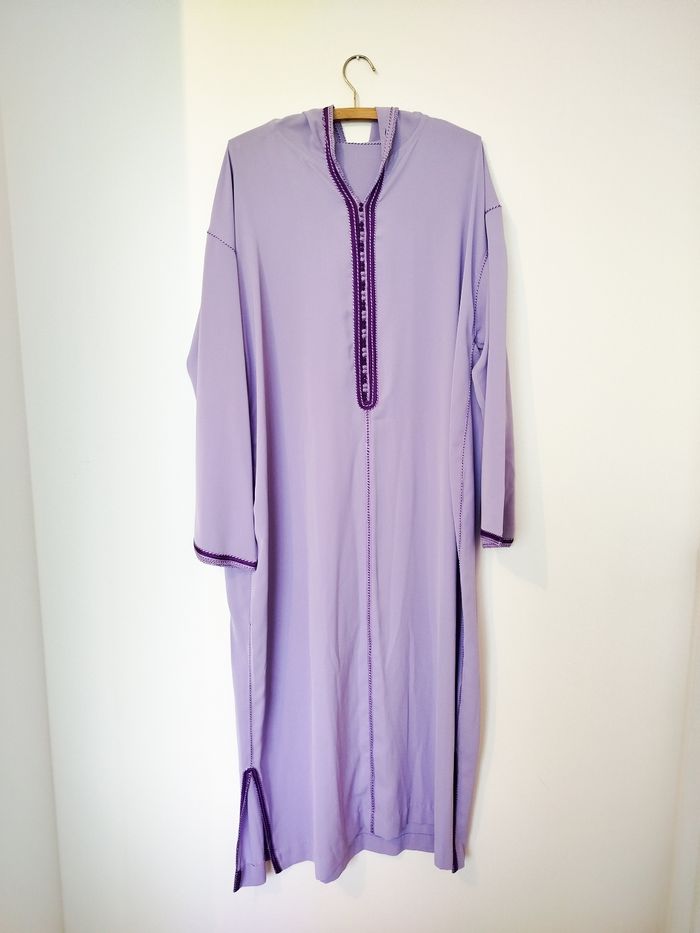 Djellaba Mauve Traditionnelle | Purple Traditional Djellaba | Chilaba lila tradicional | Djellaba viola tradizionale | Paarse traditionele djellaba ​Jamais portée, état impeccable. Superbe djellaba d'un coloris mauve/lilas avec broderies artisanales (Sfifa) violet foncé le long du col et des manches. Présence d'une capuche et de fentes latérales au bas de la robe. Tissu fluide et léger. ​Taille : Taille unique (convient du L au XL). ​État : Neuf (jamais porté). ​#djellaba #kaftan #caftan #oriental #modestfashion #traditionnel #mauve #lilas #neuf #new #artisanat #orientalstyle #ramadan #eid #tenuetraditionnelle #sfifa #robeorientale