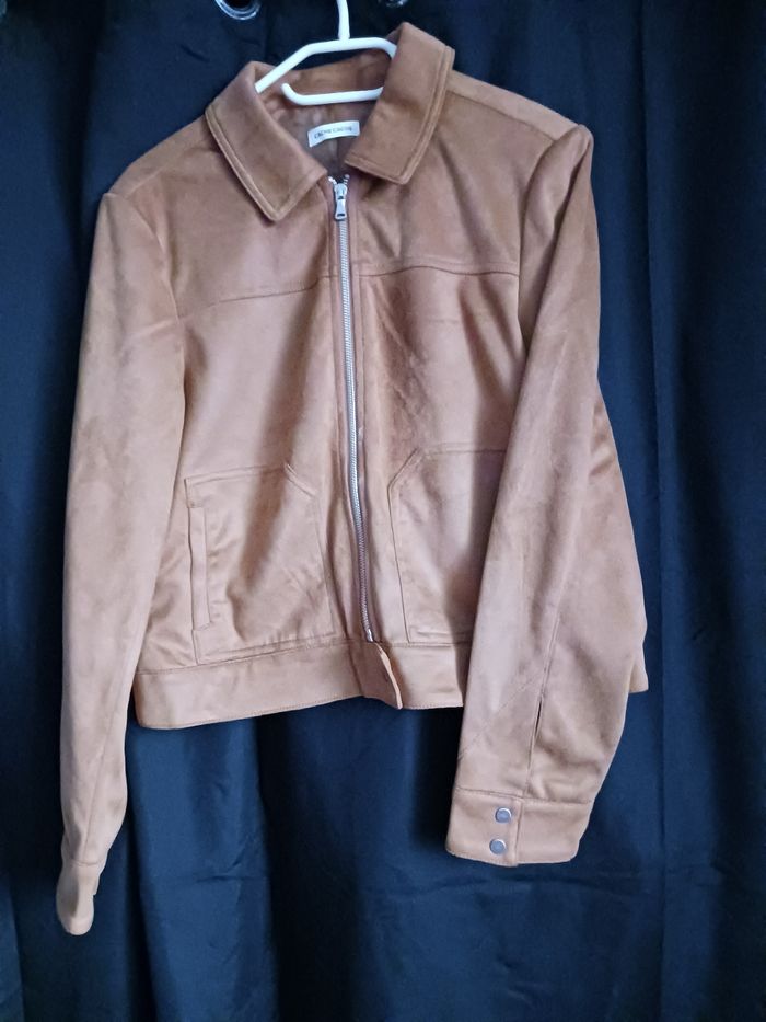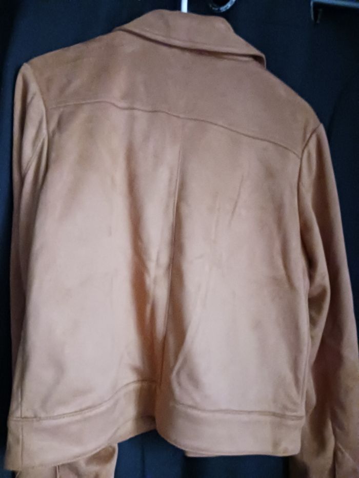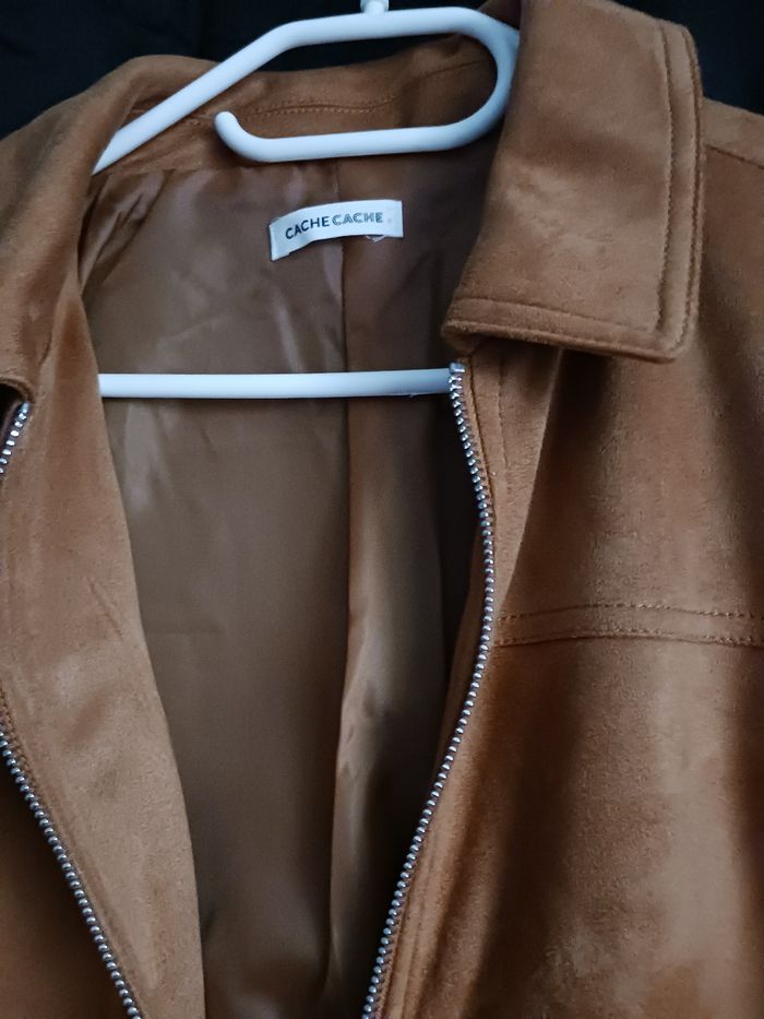Blouson camel "Cache Cache" entièrement doublé, toucher très doux, fermeture éclair et pression, taille 38. En très bon état.