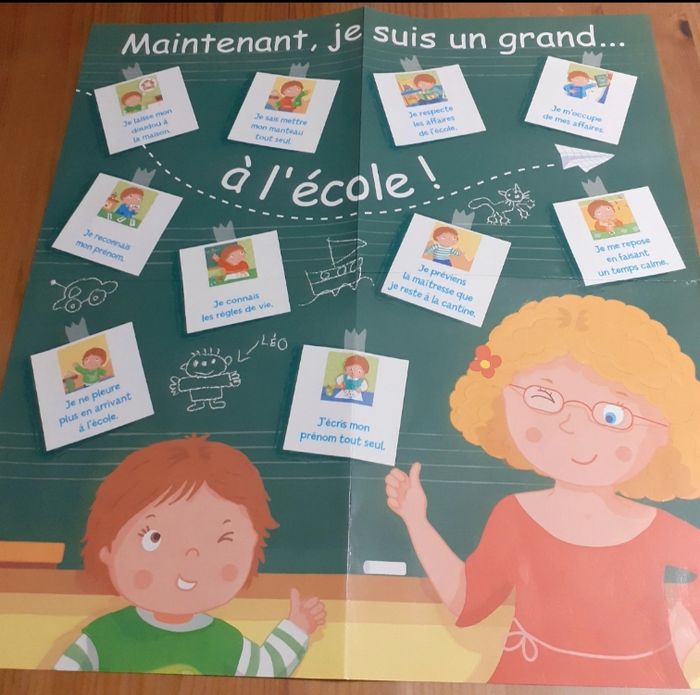 Je vends ce livre pour enfants. - Résumé : Maintenent, toi aussi, deviens une grand comme moi. Quand tu auras collé sur le tableau tous les autocollants, tu seras un grand garçon comme moi ! - Éditeur : Fleurus - Langue : Français Très bon état mais il n'y a plus les autocollants à positionner sur le poster. Pages plastifiées. N'hésitez pas à me contacter pour plus d'informations !