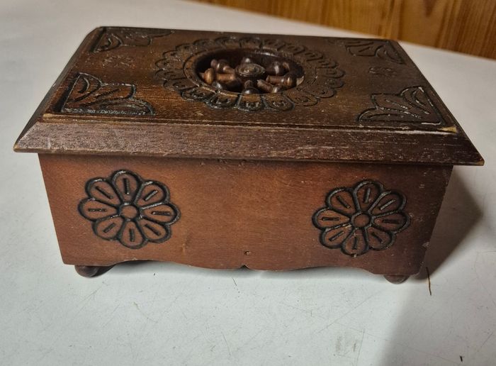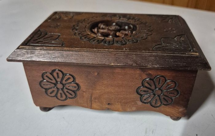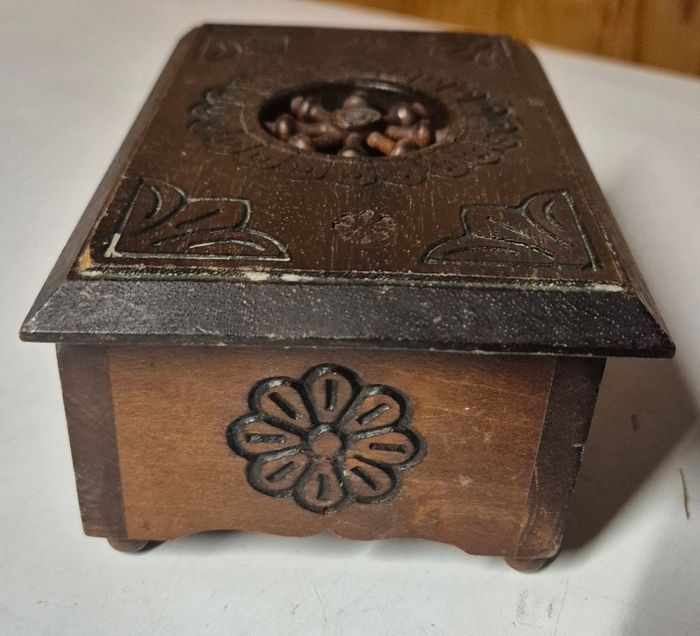 boîte en bois ancienne sculpté artisanale 15x10x7cm motifs floraux - photo numéro 1