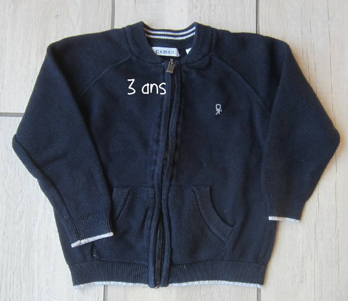 Gilet zippé. Taille 3 ans. Marque Okaidi. Coloris marine.
