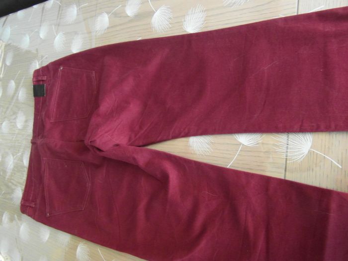 style jean T46 ( taille 43 cm , hanches 48 cm, longueur 116 cm, bas de jambe 15 cm ) taille petit très bon état rouge bordeaux - CAMAIEU