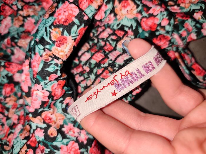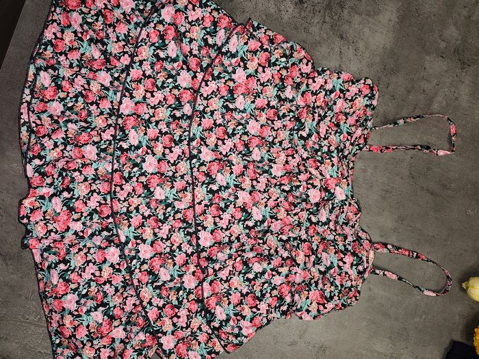 Superbe débardeur motif floral Effet froufrou Couleur noir vert menthe et dégradé de roses