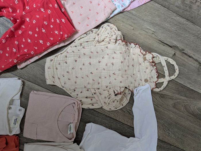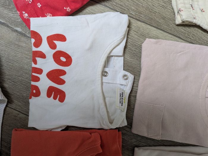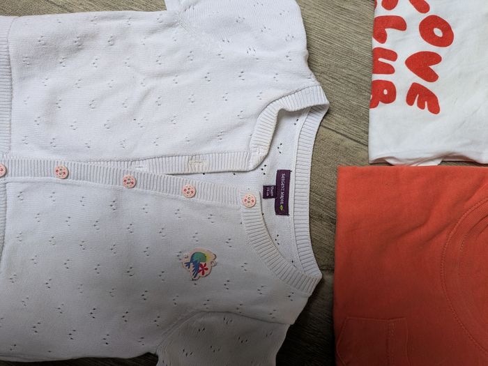 leggins 4 t-shirts 3 t shirts manches longues 1 blouse 1 gilets avec une petite tache jaune (voir photo) marques: sergent major. Kiabi. Tape à l'oeil. Okaïdi. Petits cailloux etc