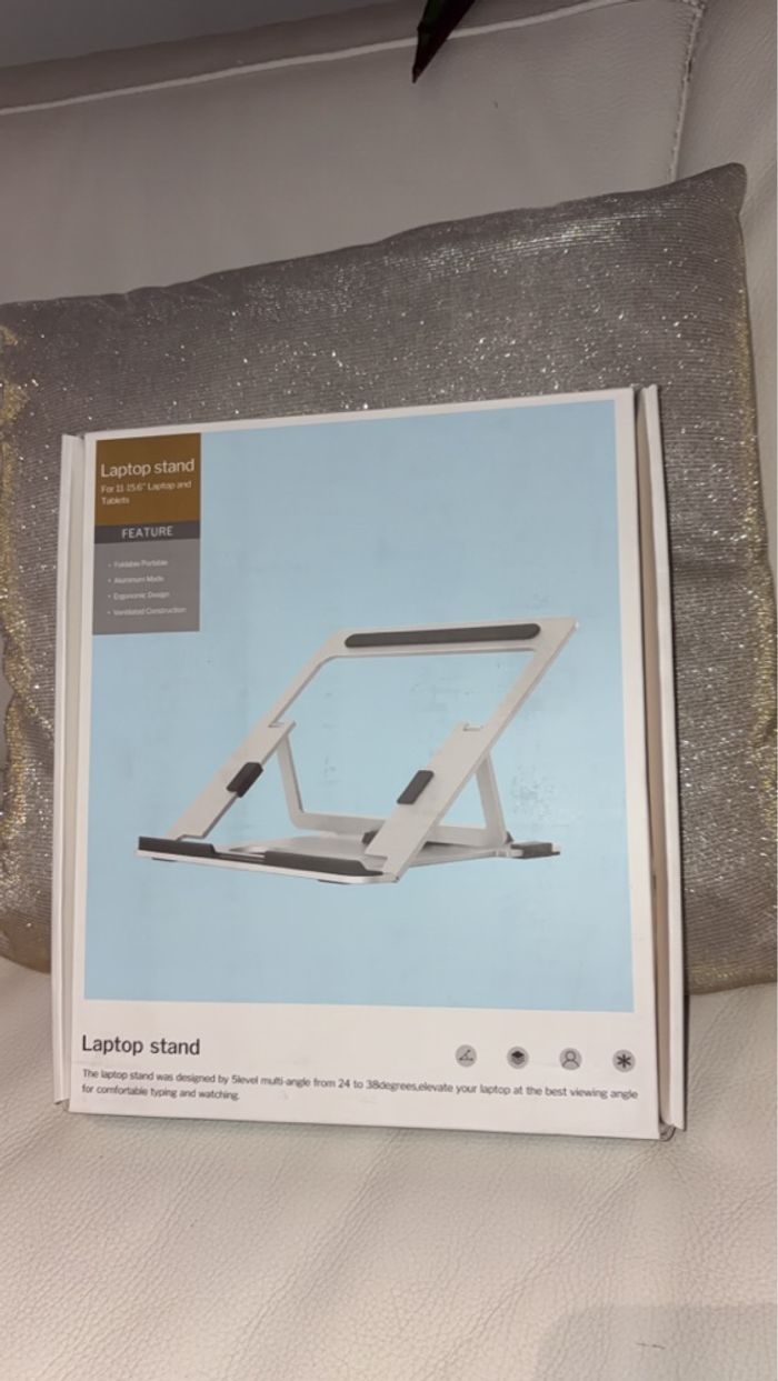 Je vends ce support pour ordinateur portable acheté il y a quelques mois. * Pourquoi je m'en sépare : Je fais un grand tri dans mon bureau et je suis passé sur une installation fixe avec double écran, je n'en ai donc pas l'utilité. * État : neuf jamais utilisé. * Caractéristiques : Il est pliable (très fin pour le transport), dispose de 5 niveaux d'inclinaison (de 24 à 38 degrés) et convient aux ordinateurs de 11 à 15,6 pouces. Sa structure ouverte permet une super ventilation pour éviter que l'ordi ne chauffe.