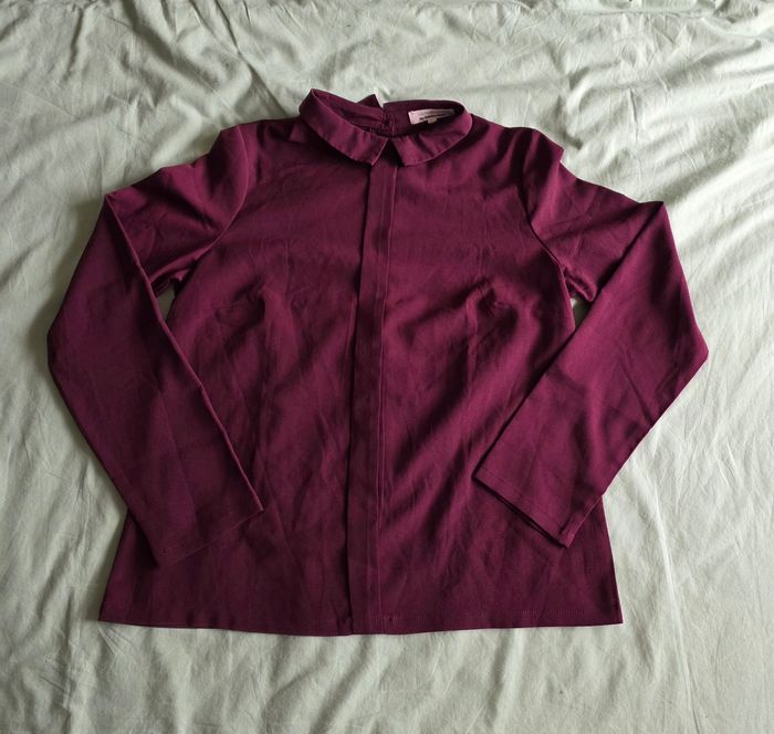 ​✨ ÉTAT: Très bon état. Porté avec soin, aucune trace d'usure. 📏 TAILLE & COUPE: Taille 1 (correspond à un 36/S). Coupe fluide avec une jolie boutonnière tout le long du dos. 🌿 MATIÈRE: Textile fluide type crêpe, très léger et agréable. Couleur prune/lie-de-vin. 📦 LIVRAISON: Envoi via Mondial Relay (lockers), Shop2Shop ou Chronopost (point relais physique). 🎁 Réductions sur les lots activées ! Profitez-en pour optimiser les frais de port.