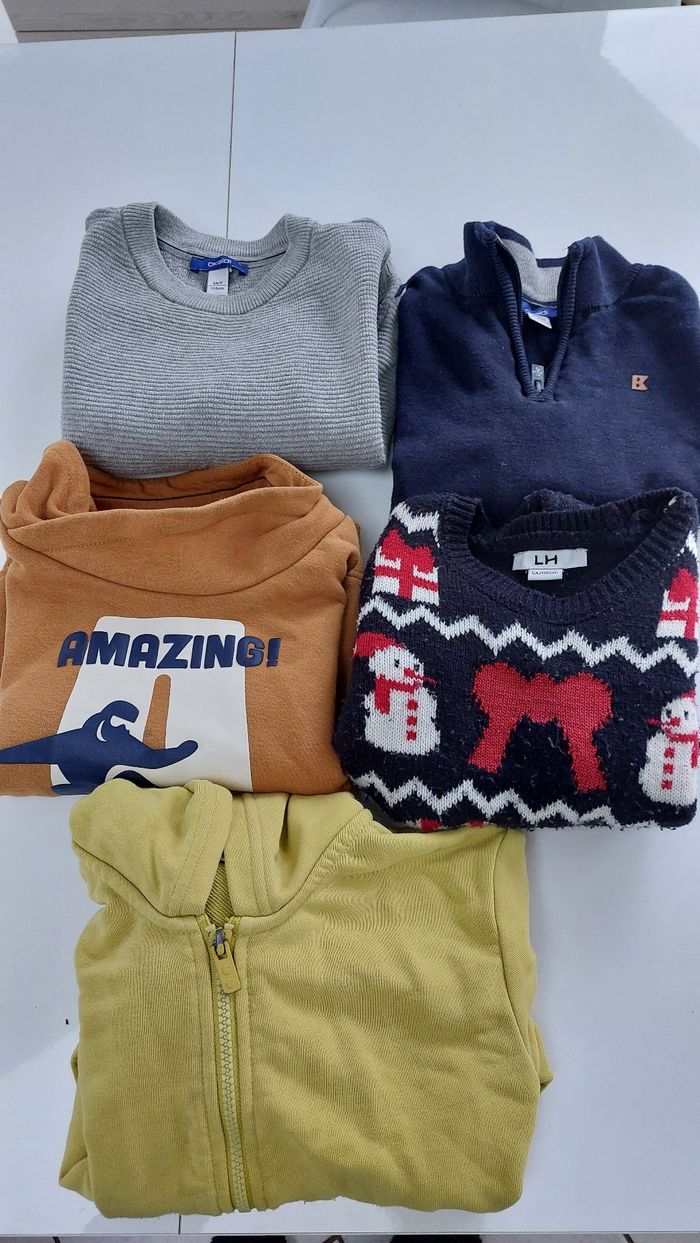 lot comprenant - 4 pulls et 1 veste -5 pantalons/joggins -3TS ML -2 pyjamas -1 polo majoritairement de vêtements Okaïdi maison non fumeur