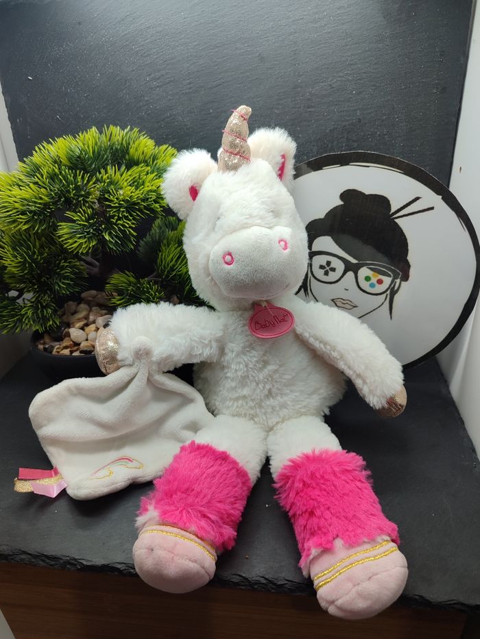 Baby Nat' Doudou mouchoir Peluche Licorne Bn0321 Blanc Rose Doré Arc En Ciel - photo numéro 1
