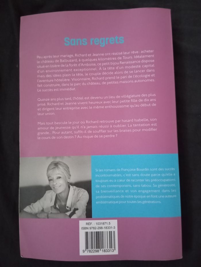 Je vends ce roman "Sans regrets" de Françoise Bourdin, auteure connue. - Titre : Sans regrets - Auteur : Françoise Bourdin - Genre : Roman Bon état N'hésitez pas à me contacter pour plus d'informations !