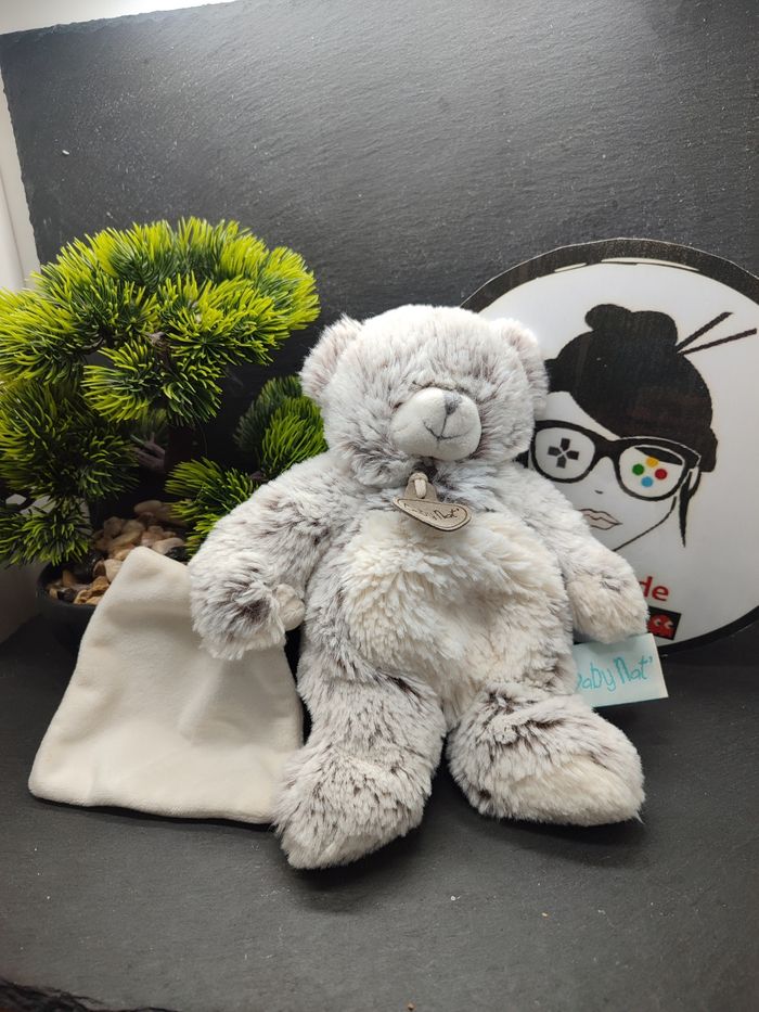 DD003408 Doudou Ours Gris Chiné Blanc Flocon Baby Nat' plat mouchoir BN664  - photo numéro 1