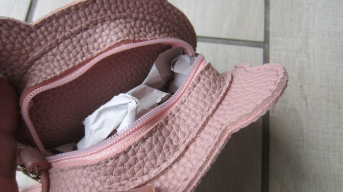 Petit sac ou porte monnaie. Coloris rose. Fermeture éclair. Diametre : 12 cm Neuf.