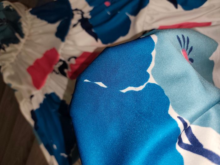 Robe matière fluide pour un été coloré au motif floral et au ton bleu et rose Robe longue
