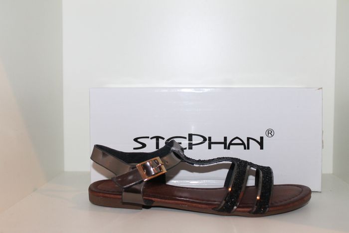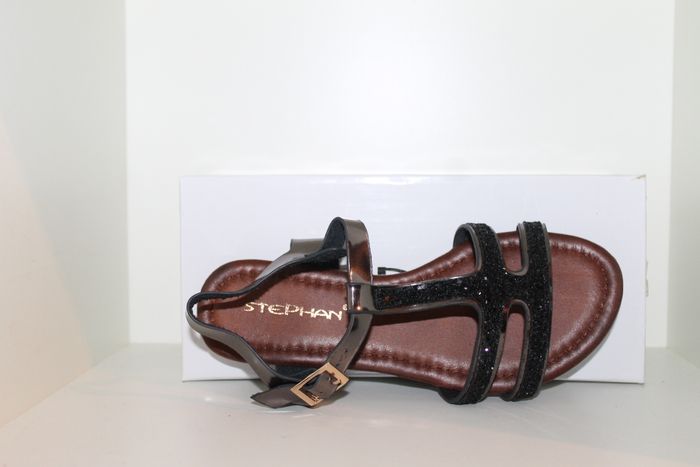 belle sandales spartiates lanières noires avec strass pointure 38,neuves dans boites idéal pour cet été en ville ou à la plage,look intemporel. marque stephan réf 1257 n'hésitez pas à faire un lot.