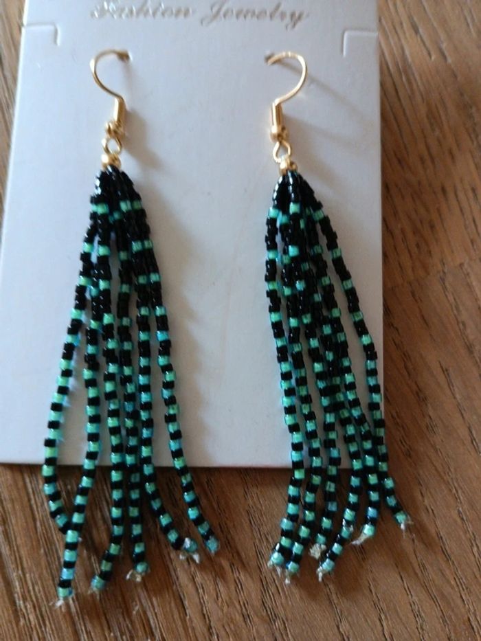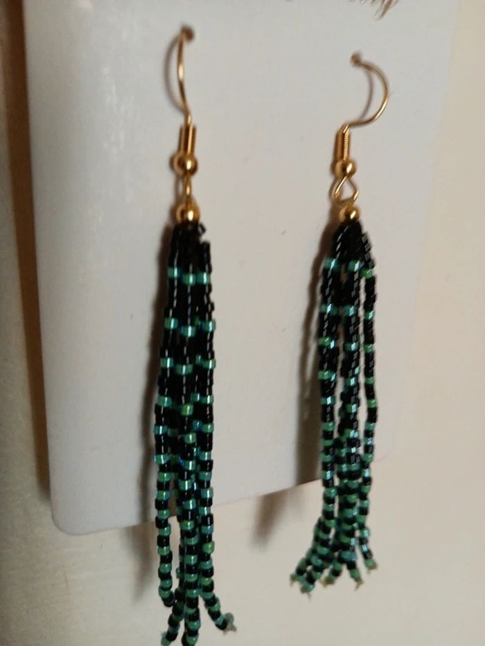 Boucles d'oreilles en perles miyuki delica Noir et luminous mermaid green Crochets dorés en acier inoxydable Environ 8cm Idéal cadeau Fait main