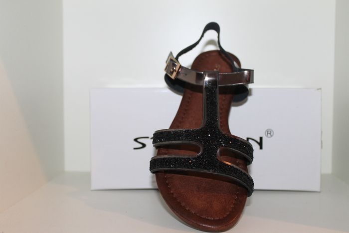 belle sandales spartiates lanières noires avec strass pointure 39,neuves dans boites idéal pour cet été en ville ou à la plage,look intemporel. marque stephan réf 1257 n'hésitez pas à faire un lot.