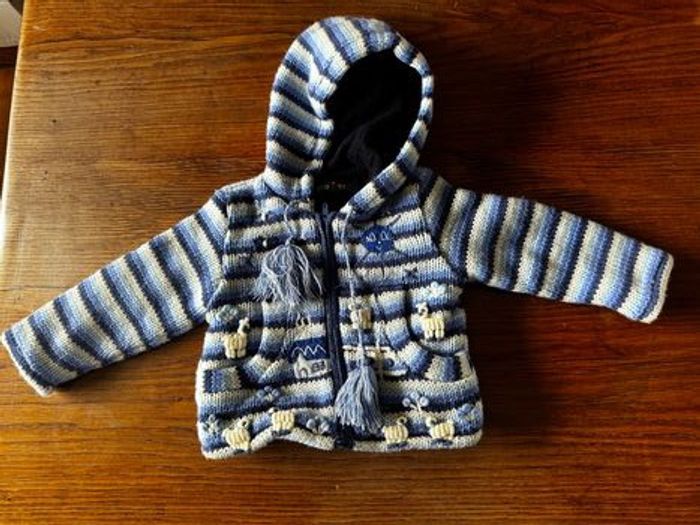 Sweat à capuche en laine marque Yusu Tex Doublé en polaire. Fermeture éclair Vêtement fait au Pérou Taille 12-18 mois #sweat #sweatenfant #sweat1218mois #yusutex #sweatyusutex #sweatacapuche #sweatacapucheenfant #interieurpolaire #vetementspourenfants #vetement1218mois