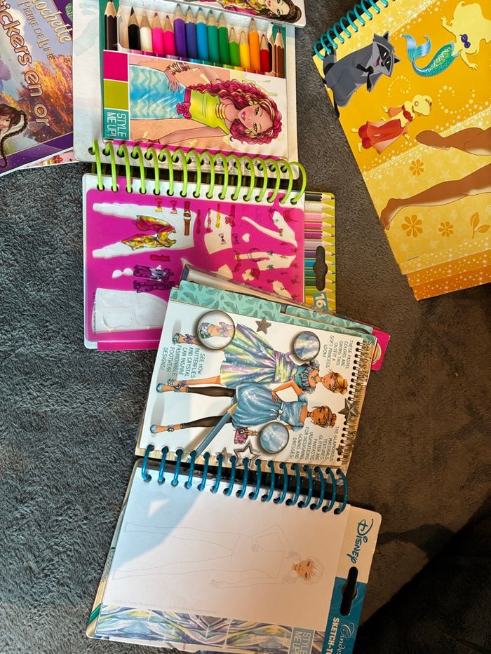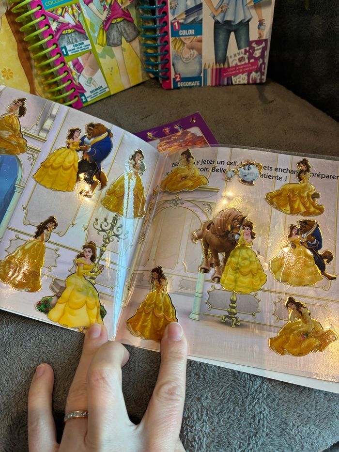 Lot cahiers livrets activités Disney princesse * Livre Disney princesse : habille tes princesses 1 partie personnages à habiller avec coloriage et stickers + une partie coloriage 20 coloriages sans compter les personnages à habiller Il reste quelques stickers * Lot de 2 livrets spirales coloriage dessin Style Me Up Déjà commencés : il reste quelques stickers Casual chic : reste 16 dessins (les autres ont été retirés, seuls 2 dessins laissés ainsi ) Cendrillon Disney : reste 13 pages Il manque quelques crayons de couleurs dans chacun mais l’essentiel est là * mon histoire à décorer : la belle et la bête et clochette : stickers repositionnables #stefetjuju51jeux #stefetjuju51disney maison non fumeurs bien d’autres choses dans mon dressing de nouveaux articles très régulièrement nombreux # dans mon profil pour faciliter vos recherches merci pour votre visite et belle journée ☺️ #disney #coloriage #stickers #princesse #stylemeup