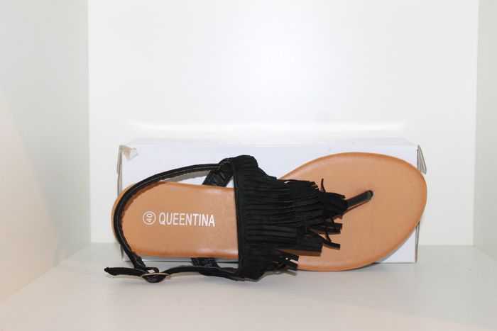 sublime tongs noires à franges pointure 40,neuves dans boites idéal pour cet été en ville ou à la plage,look intemporel. marque queentina réf 1254 n'hésitez pas à faire un lot. #tong #été #claquettes