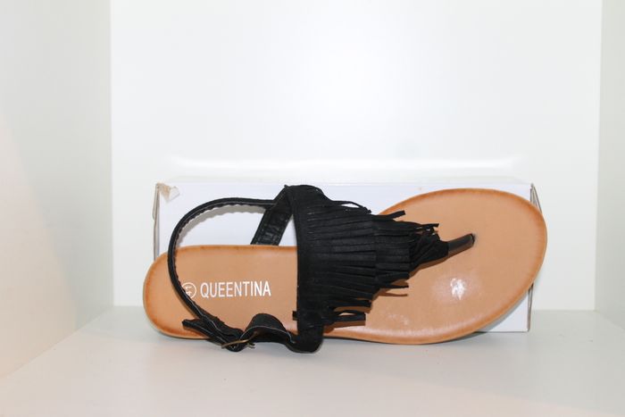 sublime tongs noires à franges pointure 41,neuves dans boites idéal pour cet été en ville ou à la plage,look intemporel. marque queentina réf 1254 n'hésitez pas à faire un lot. #tong #été #claquettes