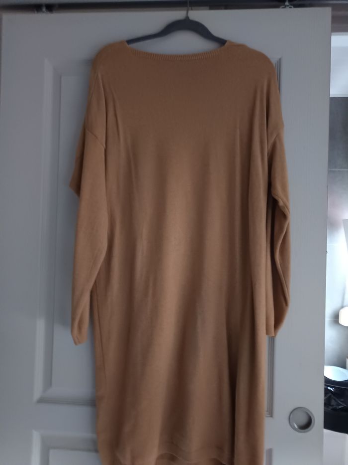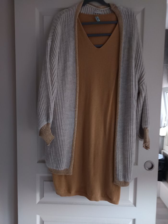 Vend en robe en laine couleur camel mais une fois trop grande possibilité d'avoir le gilet avec 30 € les deux