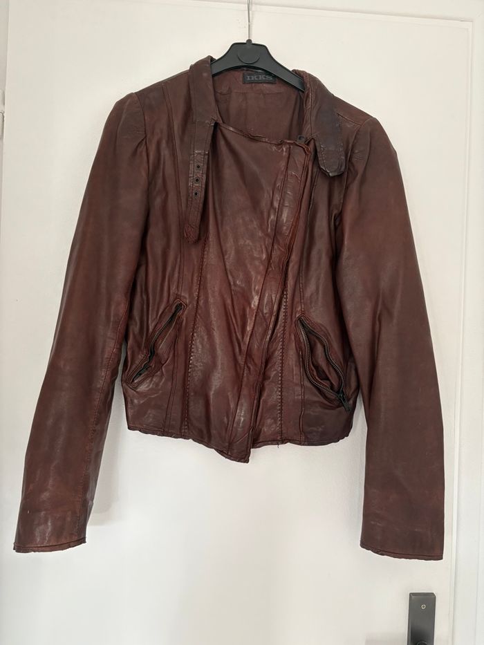 Blouson femme cuir marron agneau - IKKS - taille 38 / M - photo numéro 1