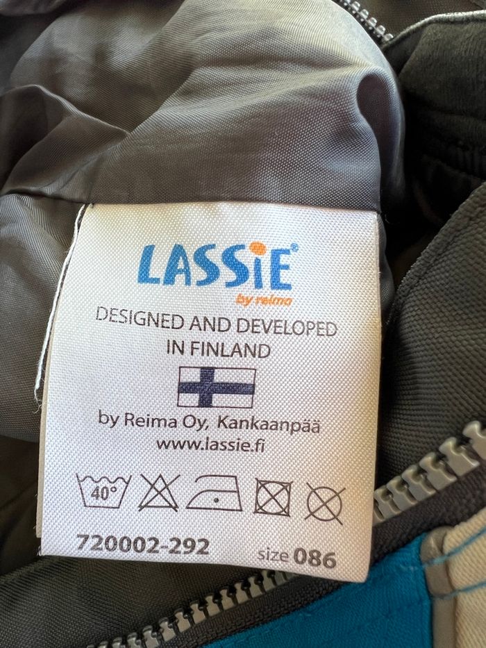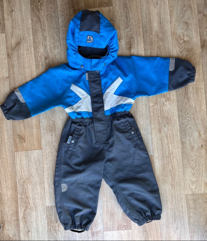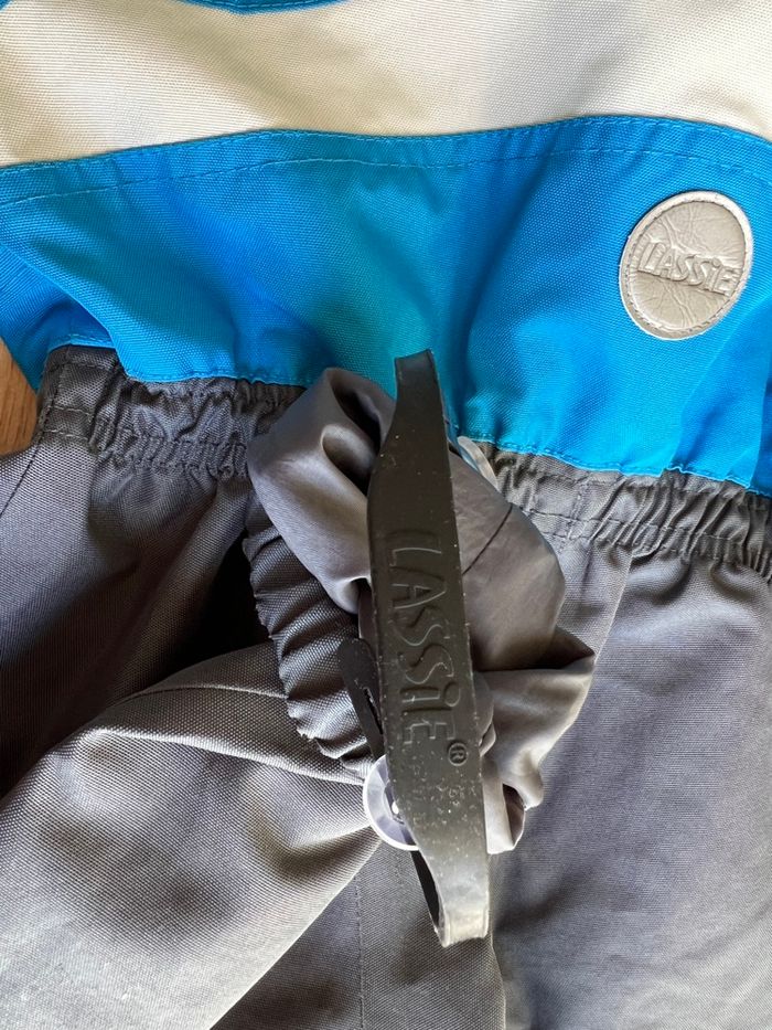 Combinaison 86 cm Lassie (Reima) Combinaison finlandaise pour jouer libre de ses mouvements et protège des salissures et empêche de trouer ses vêtements. Tiens au chaud et au propre. Marque Lassie by Reima. La combinaison est vendue sous la marque Lassie mais c’est Reima qui l’a fabriquée. Les deux marques sont finlandaises et sont conçus pour durer sur plusieurs enfants et dans des conditions très dures. Possibilité de la porter à l’automne, au printemps comme en hiver en fonction de ce que l’on met en dessous. Très bon investissement car on garde tous les autres vêtements propres et intactes. Élastique à la taille pour que la combinaison tienne bien. Parmenture avec scratch devant la fermeture éclair pour protéger du vent et de l’eau. Capuche très proche du visage avec élastique sur les côtés et parmenture sur le devant pour fermer et protéger bien le cou. Les petites parties grises sont réfléchissantes et peuvent être bien vues dans le noir par exemple par des voitures. À la cheville, des boutons et élastique pour passer l’élastique sous la chaussure afin de protéger entièrement l’enfant. 1 des élastiques d’origine a été perdu, et j’ai donc racheté un élastique à trou en mercerie pour mettre à l’autre pied. La combinaison est en bon état. Des traces de frottements sont présentes car beaucoup portée. Durera encore très longtemps.