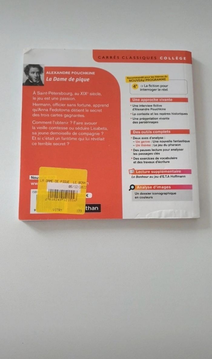 Je vends ce roman "La dame de pique" d'Alexandre Pouchkine, édition classique. Un angle et l'arrière sont un peu animé, voir photo.