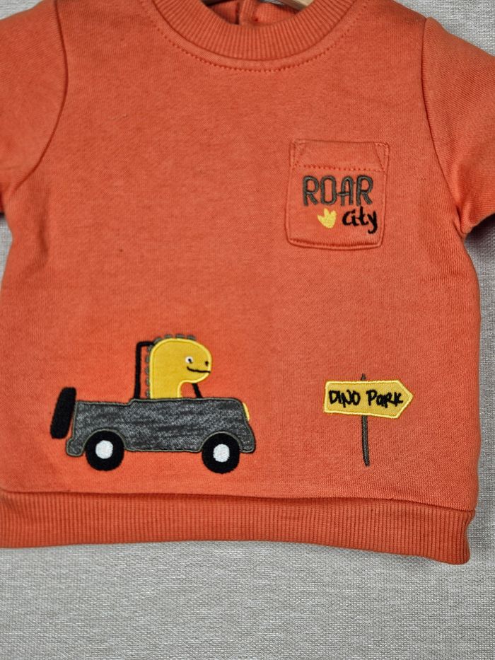 Hello ! 👋 Je te propose cette pièce sans marque, une super trouvaille pour ton dressing ! pour le dressing de bébé 👶 Ce petit sweat couleur terracotta est trop mignon avec son dinosaure au volant et ses inscriptions brodées. Informations utiles: * 👕 Article : Sweat col rond avec ouverture boutonnée au dos * 📏 Taille : 3 mois * 🌈 Couleur : Terracotta / Orange * 🧵 Matière : 59% Coton, 41% Polyester * ✨ État : ⭐⭐⭐⭐ Les petits + : 🏡 Logement non fumeur et sans animaux. 📦 Envoi rapide et soigné. N'hésite pas si tu as la moindre question ou si tu veux d'autres photos ! Je suis là. 😉 #sweatbebe #3mois #dinosaure #terracotta #orange #bebegarcon #hiver #automne #sansmarque #mignon