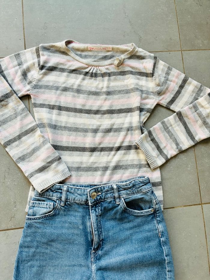Ensemble / tenue fille hiver comprenant : * Pull hiver fille , Tout doux Marque : CFK Taille : 10 ans Rayé : gris blanc et rose * jean troué avec taille réglable : 9/10 ans H&M #stefetjuju51fille10ans maison non fumeurs bien d’autres choses dans mon dressing de nouveaux articles très régulièrement nombreux # dans mon profil pour faciliter vos recherches merci pour votre visite et belle journée ☺️ #pull #hiver #fille #ensemble #jeantroué