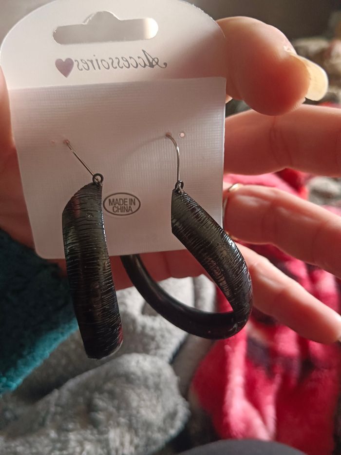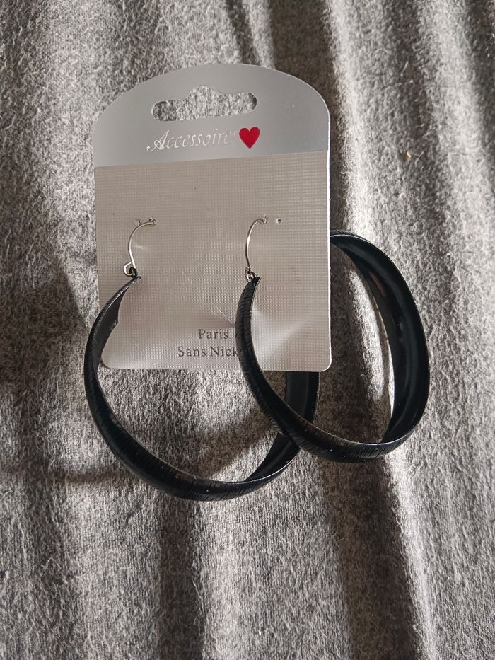 Boucle d'oreille grande créole noir légère jamais porté sans nickel