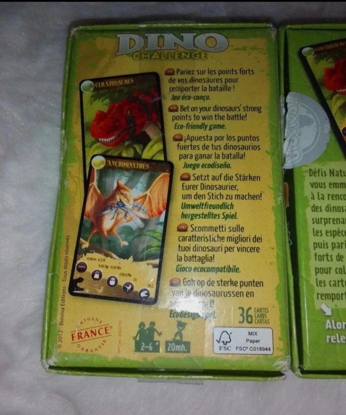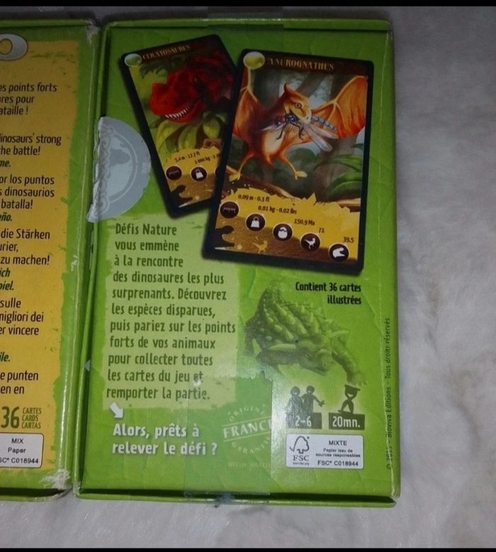Dino challenge, défi nature dinosaure boîte avec légère imperction mais les cartes sont en état impeccable