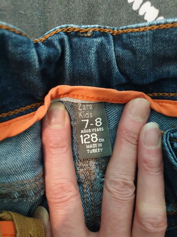 Lot de 2 jeans le 1er avec les motifs taille 8ans un peu usé au genou et le 2ème jean droit 7/8ans mais taille grand taille 9/10ans peut être réservé à la taille très bon état