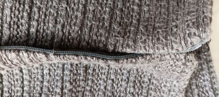 Jupe taille basse Dimension tour de taille 84 hauteur 43 cm Agrémentée de fils argent et d'un semblant de chaînette tout autour partie basse et sur le haut comme s'il y avait des poches Fermeture en parfait état de fonctionnement Toute doublée A été lavée