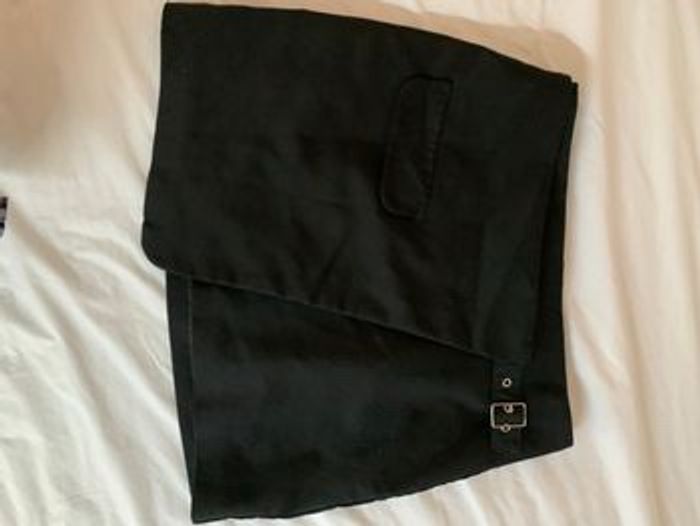 Jupe noire portefeuille Doublée Taille S Taille réglable par deux boutons à l’intérieur et une boucle devant Rabat de Fausse poche devant Longueur 38 cm