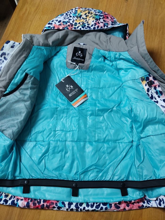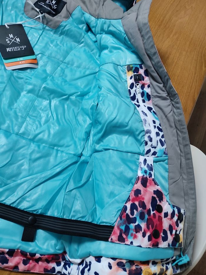 Blouson de ski" SMN " Neuf avec étiquette Taille S Capuche ajustable et amovible Poche bras gauche pour forfait Poches extérieures zippées Poche intérieure zippée également Poignées serrés et passage du pouce Ceinture pare neige