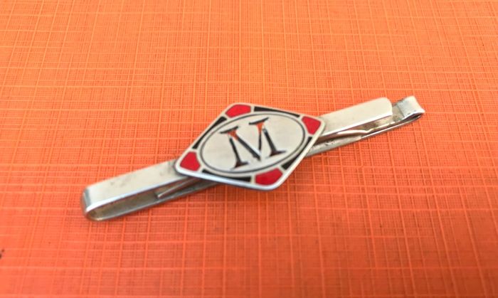 Années 1940 Pince  à cravate Monogramme M Vic dépose Breveté SGDG