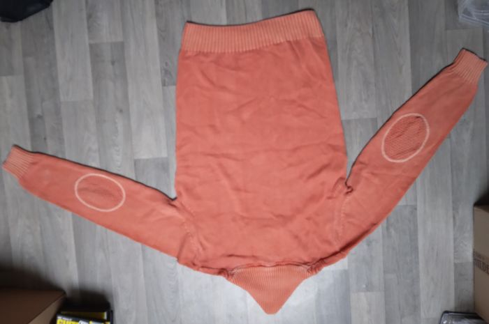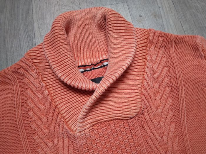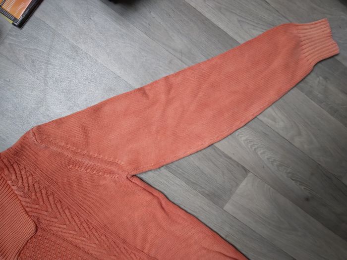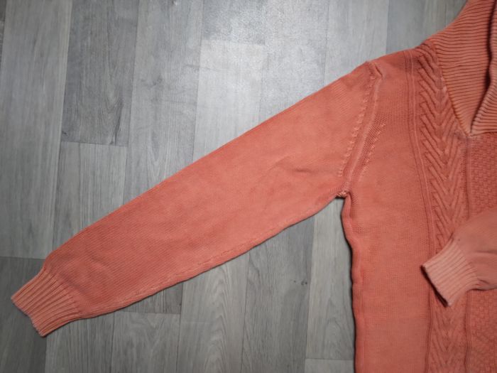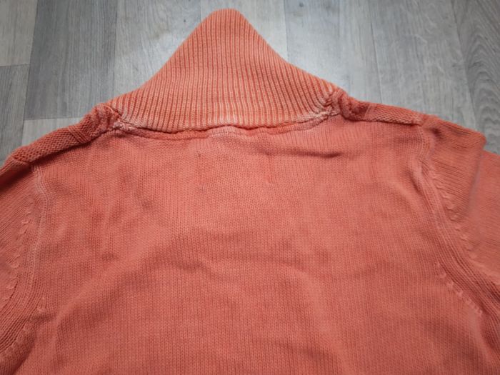 Pull homme orange délavé avec col, taille XL petit défaut derrière en bas