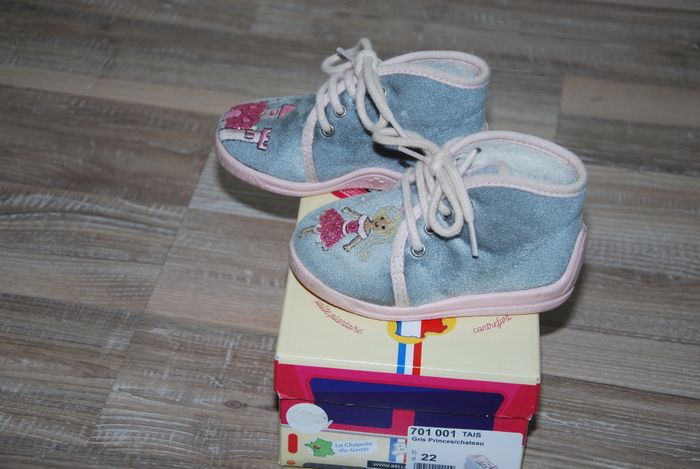 chausson bellamy tais gris taille 22 princesse chateau, ce sont les chaussons de chez mamie donc très peu portés, bon état