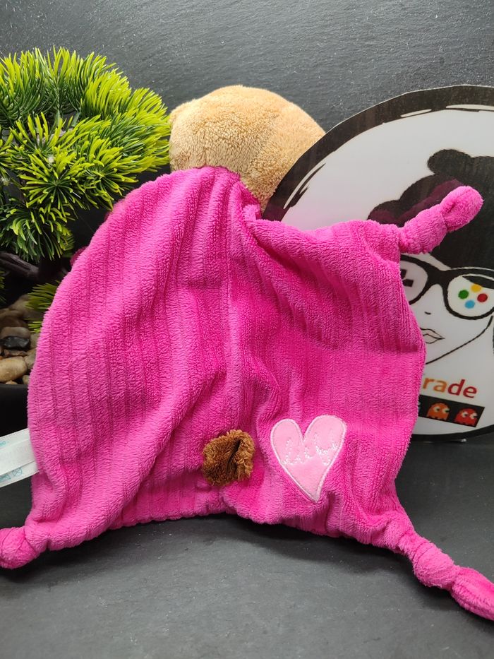 DD000038 Lief Doudou ours rose coeur marron côtelé carré plat Lied! Noeud  - photo numéro 1